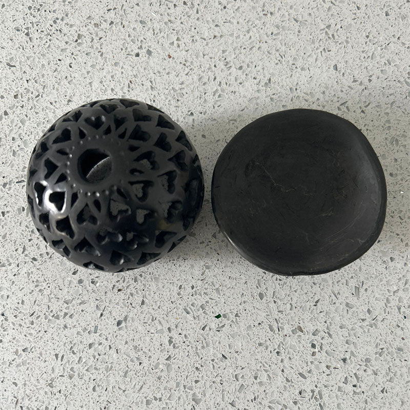 Small Mexican Heart Hand Carved Black Mud Incense Burner