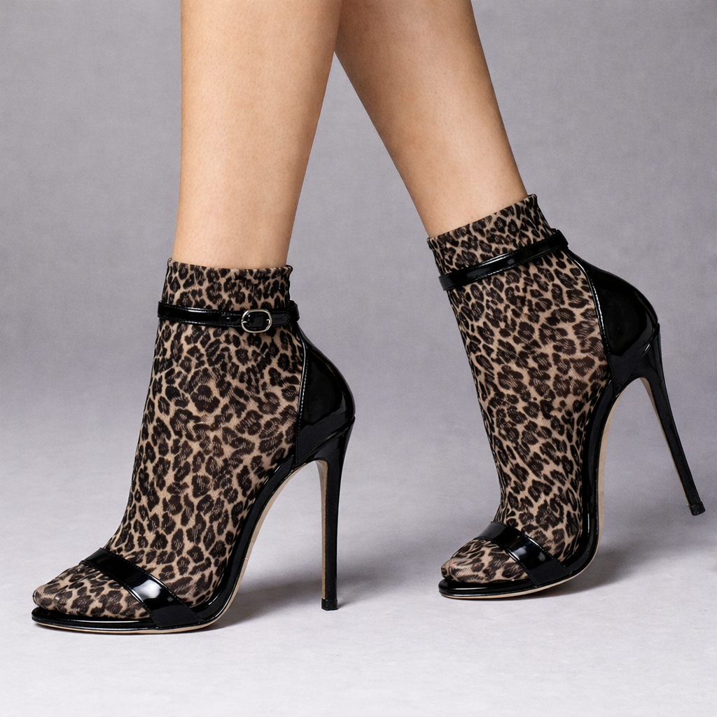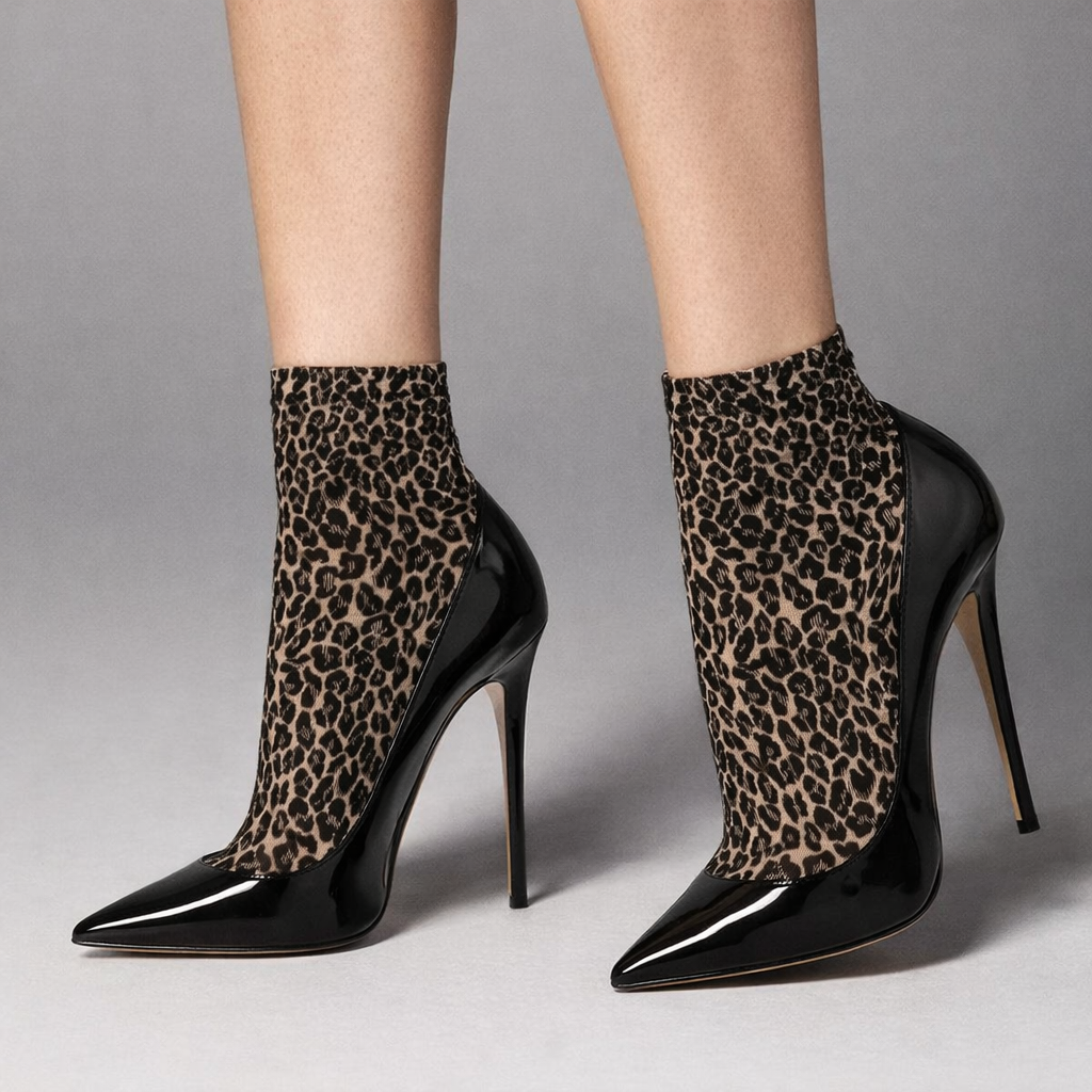 Veneziana Opaque Microfibre Leopard Print Ankle Socks