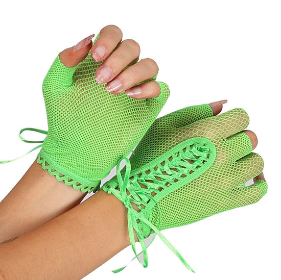 Tantalize onlookers with these fingerless fishnet gloves and corset style detailing on the back of the palm! Pull them tight or leave them open for two distinct looks - they make an ideal fancy dress accessory.